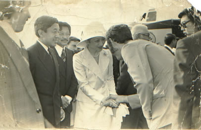 Akito Michico, príncipe do Japão recebe os cumprimentos de Pedro Teixeira. |